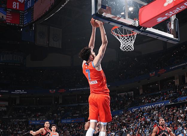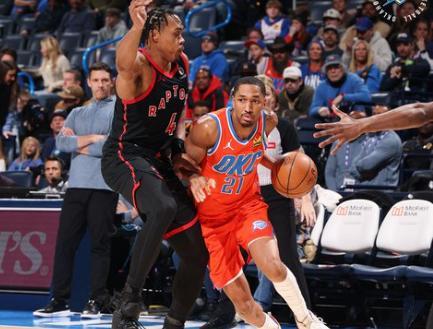 NBA常规赛,雷霆坐镇主场迎击猛龙。本场比赛之前,雷霆37胜9负排名西部第一,近段时间他们的状态有一些起伏,上一场还输给了东部倒数的步行者,不过事实上,雷霆依旧是今年最有统治力的一支队伍,战绩稳居联盟第一的同时,其场均得分,防守效率等多项数据都排在联盟第一。毕竟也是卫冕冠军,连续三年的常规赛西部第一,雷霆也积累了一定的强队底蕴了,同时不缺乏季后赛经验,还有亚历山大这种MVP级别的当家球星率领。另一边的猛龙,28胜19负排名东部第三,作为东部超级黑马,他们的实力也不容小觑。